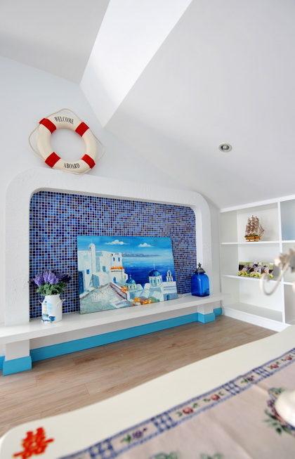 客厅作为待客区域,一般要求简洁明快,同时装修较其它空间要更明快光鲜,通常使用大量的石材和木饰面装饰;美国人喜欢有历史感的东西,这不仅反映在软装摆件上对仿古艺术品的喜爱,同时也反映在装修上对各种仿古墙地砖、石材的偏爱和对各种仿旧工艺的追求上。总体而言,美式田园风格的客厅是宽敞而富有历史气息的。